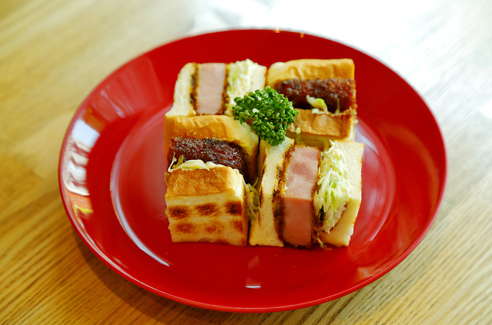 ハムカツサンド750円は、厚切りの浅草ハムに自社のパン粉をつけて揚げ、下町らしい甘辛の味付けに。マヨネーズも自家製。