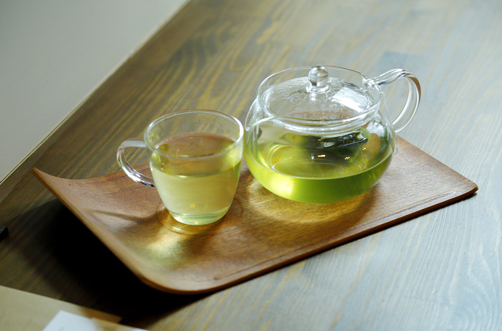 宮崎の白玄堂の有機煎茶。ほかにAFRIKA ROSEのローズティーや、蔵前の自家焙煎コーヒ店コフィノワのコーヒーなどをそろえる