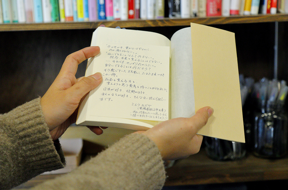 次に読む人に宛てた手紙をはさみ、自分の本と交換するという、ユニークな「繋がる本棚」