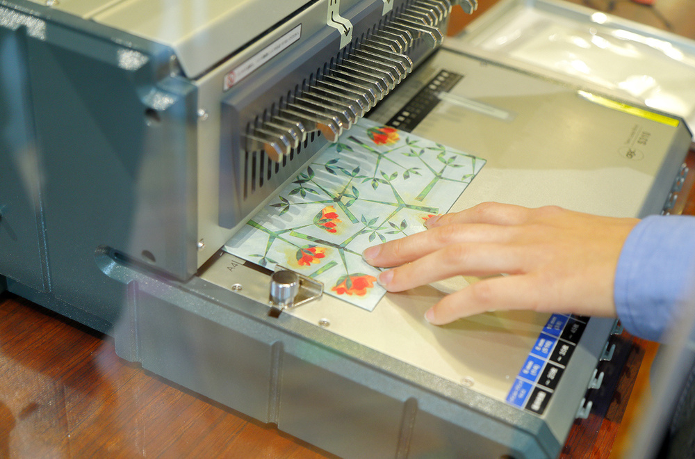 製本は店のスタッフにまかせて。リングの位置もいろいろ。