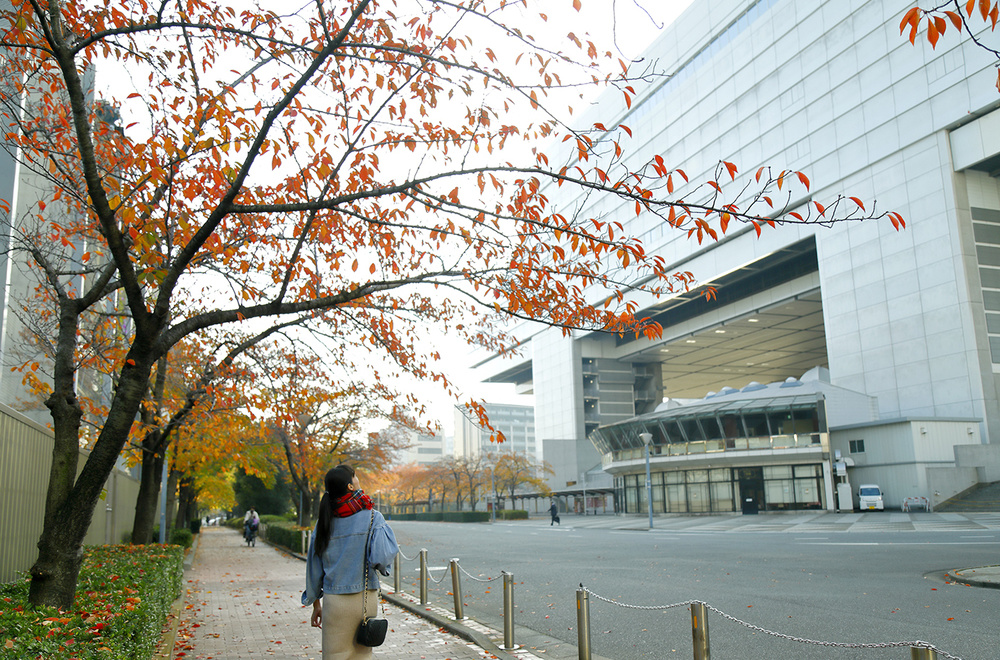江戸東京博物館の前は、心地よい木立の散歩道。