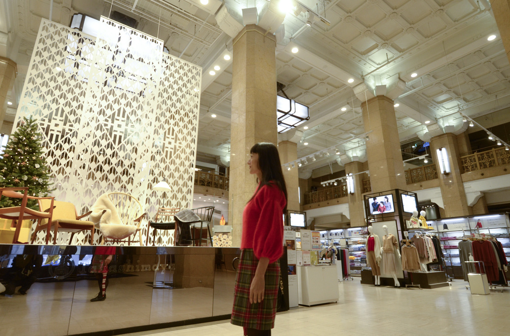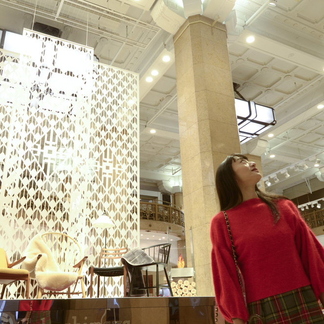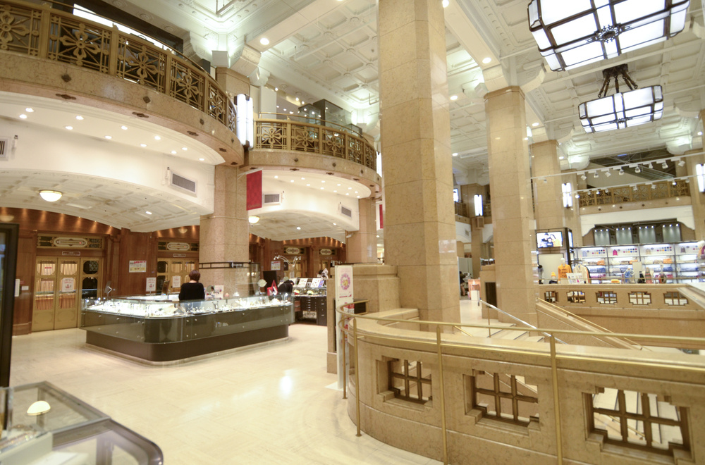 日本橋を代表する百貨店のひとつである髙島屋。昭和8(1933)年に竣工し増築を繰り返した本館は、重厚な西洋建築の中に和の意匠を随所に取り入れた、昭和の名建築として知られています。その規模と保存状態のよさから、百貨店初の重要文化財に指定されました。外壁、エントランスの吹き抜け、エレベーターホール、屋上などに、竣工当時の壮大な建築様式や美しい装飾が見られます。毎月第2金曜日には、コンシェルジュの案内による重要文化財見学ツアー(無料、予約制)も催しています(現在休止中)。