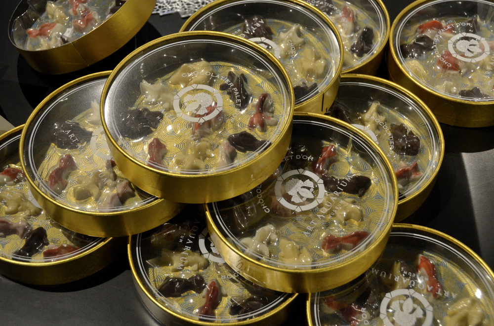 金魚の形の5色5味のチョコレートがかわいい、パレドオール・ショコラ・ポワソンルージュ2200円。
