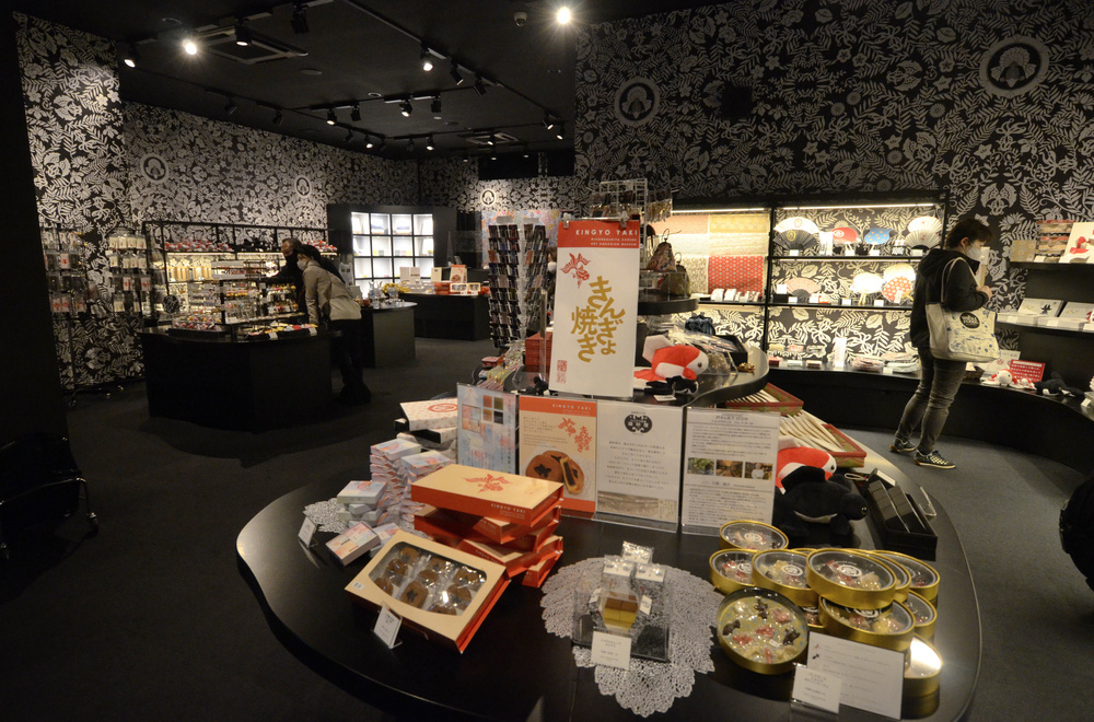 ショップには、金魚をモチーフにした小物やお菓子も充実。