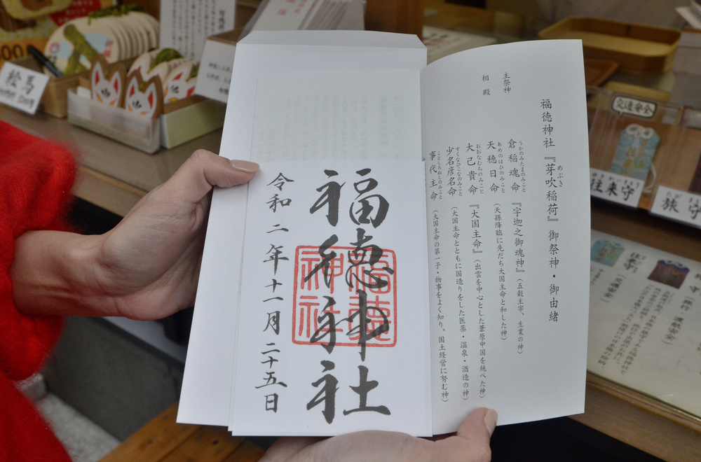 御朱印は授与所で10:00~15:00、当面は参拝証を渡し、御朱印帳への押印は行わない。初穂料500円。