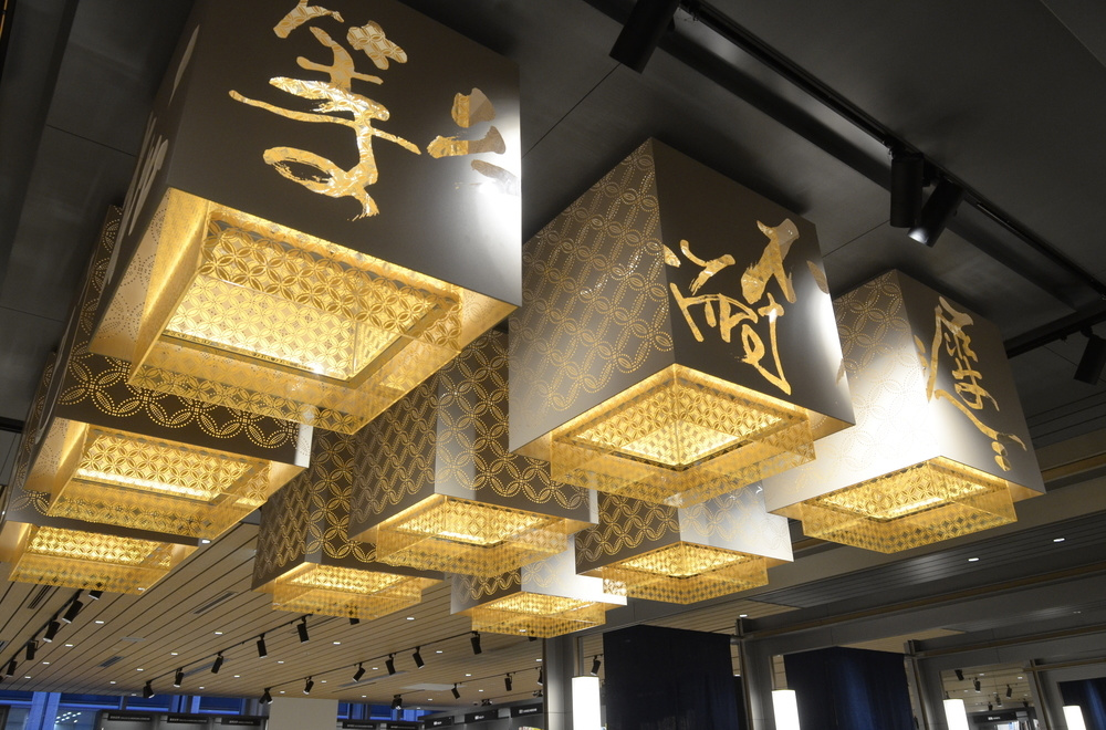 フロアの四隅には、春夏秋冬を表した明かりが趣を添えている。