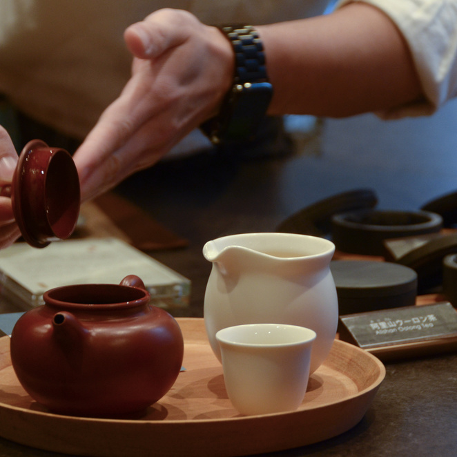 専用の茶畑で栽培したこだわりの茶葉を、伝統の技で焙煎したお茶には、それぞれの産地の風土や香りが生きています。店には茶葉や茶器が売られているほか、台湾から来た茶師が本場の作法で丁寧にいれてくれるお茶を飲むこともできます。茶文化体験レッスンも行われています。