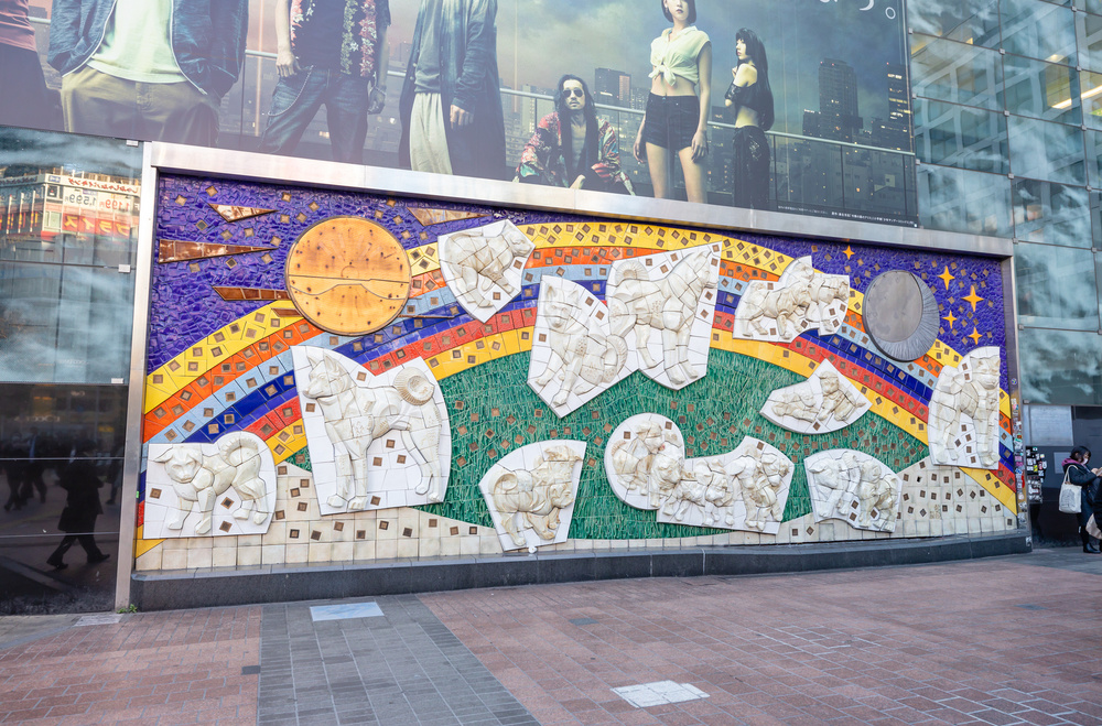 ハチ公口を出てすぐ右の壁にあるハチ公のレリーフ。