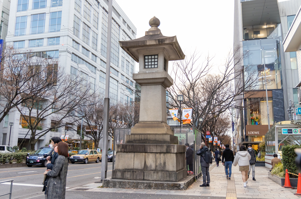 帰りは、交差点手前にある表参道駅A3口から。前には表参道交番、そして、そこに並んで立つ大きな石灯籠が、この道が明治神宮へと続く参道であることを物語っています。