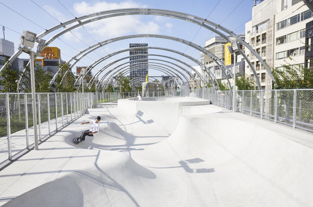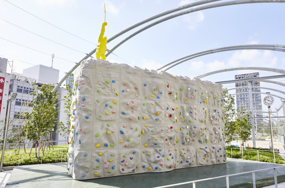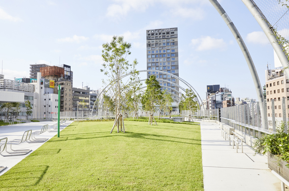 開設から約67年を経て、MIYASHITA PARKの最上階に新たに生まれ変わった渋谷区立宮下公園。1.27haの敷地には約1000㎡の芝生ひろばのほか、有料のスケート場、ボルタリングウォールのほか、団体のみで利用できるサンドコート仕様の多目的運動施設も整備されています。バリアフリーも万全の空と緑が広がる心地よい公共空間で、のんびり過ごしてみませんか。