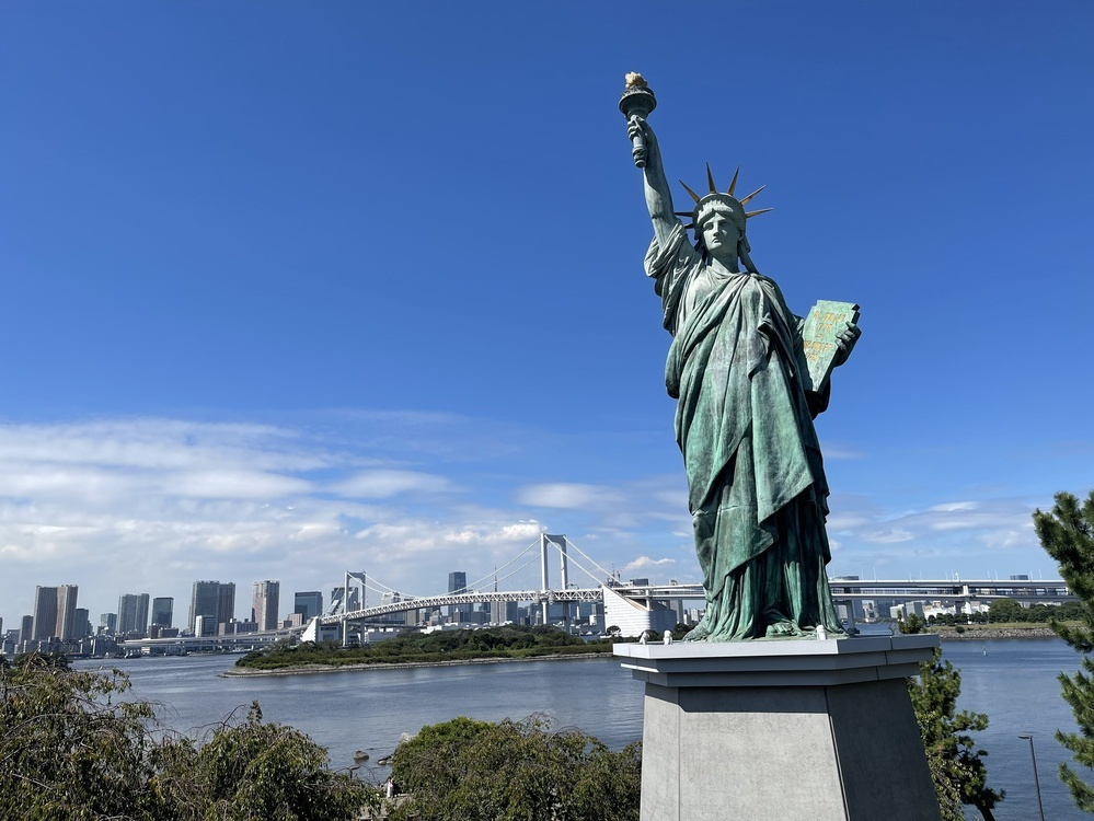 パリの自由の女神像から型を取って造られ、2000年に設置。像の高さは約11m、重さは約9t。