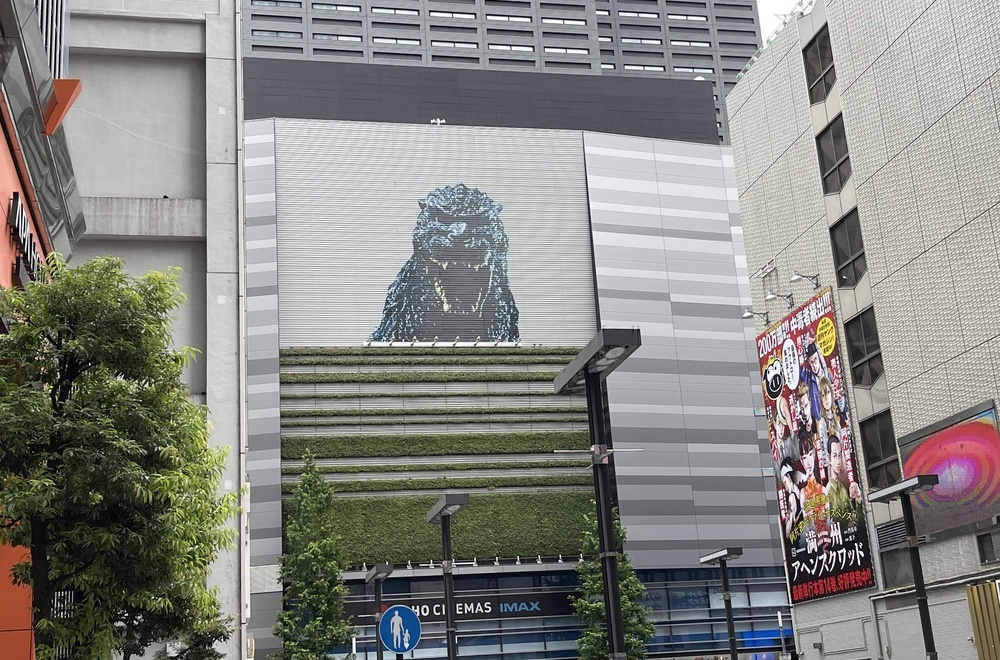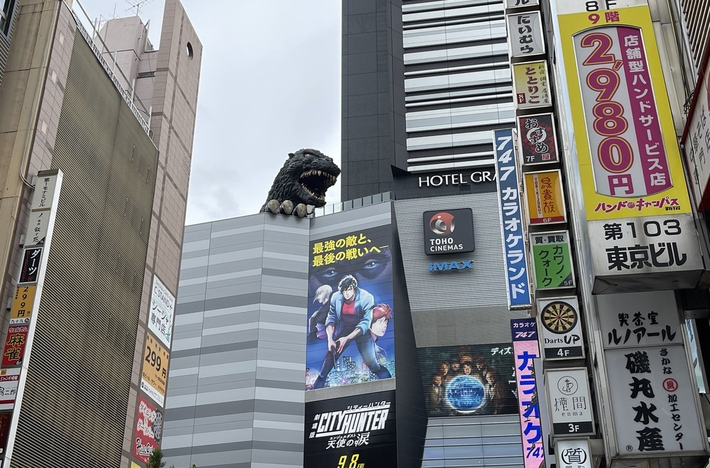 1954(昭和29)年に映画が初公開されて以来、未だ人気が衰えることなく新作が作り続けられている「ゴジラ」。そんなゴジラと出会えるのが「歌舞伎町」の新宿東宝ビルです。今、まさに街を破壊しようと、ビルの後ろから顔を出すゴジラは臨場感にあふれ絶好のフォトスポット。ぜひ、さまざまな角度からベストショットをねらってみてください。ビルの側面に描かれたゴジラにも注目です。