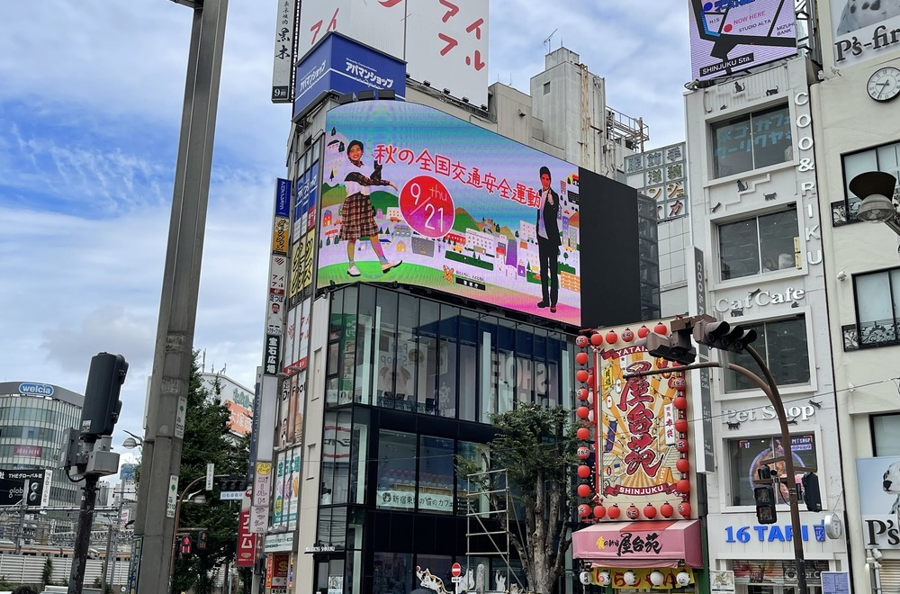 改札を出たら地上に上がり、新宿駅前広場に出ます。新宿通りを渡って次のスポット、クロス新宿ビジョンへ。