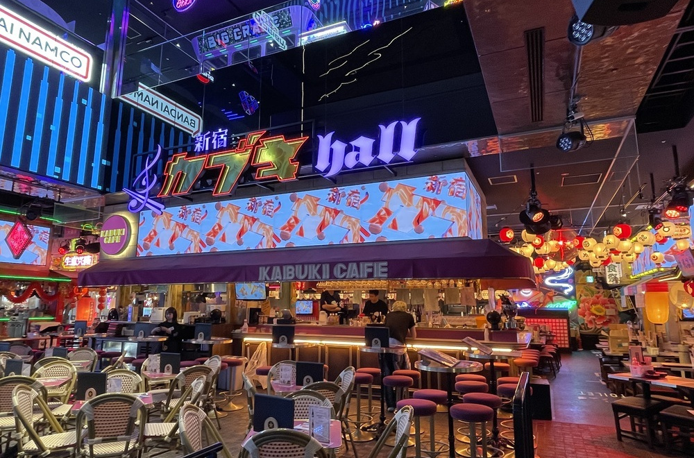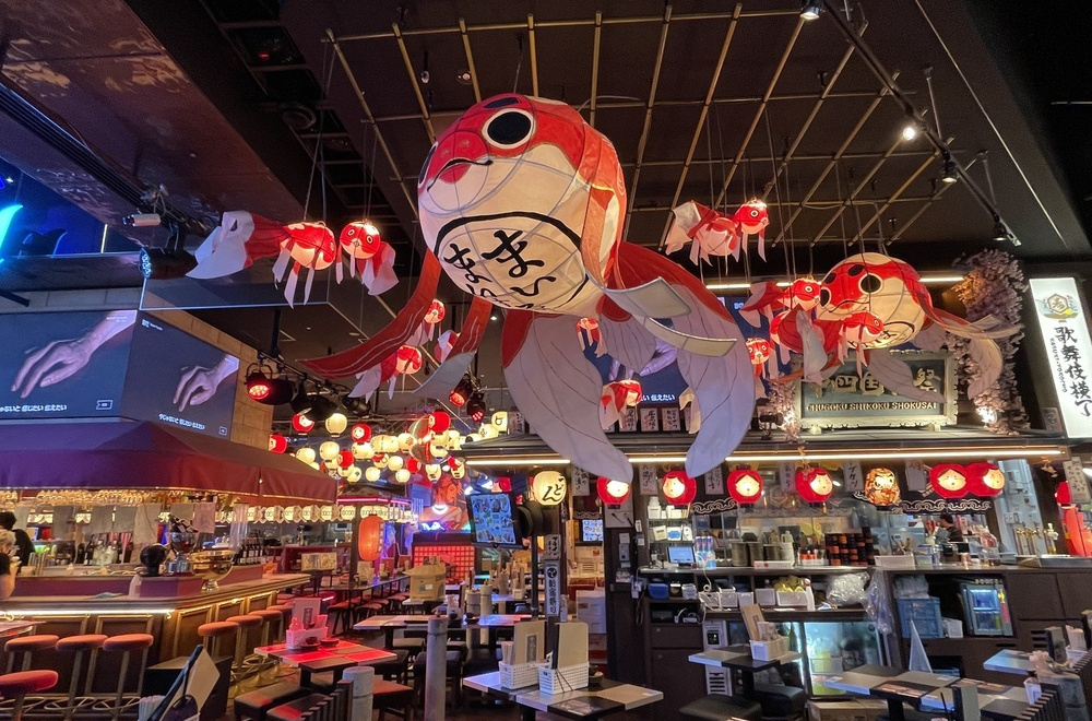 「祭り」をテーマにした食と音楽と映像が楽しめるエンターテインメントフードホールです。日本各地と韓国の料理が味わえる食祭街は、日常を忘れるほどの派手なディスプレイで思わずテンションが上がります。ホール内にはステージもあり、毎日パフォーマンスやイベントが開催されているので、こちらもぜひチェックを。