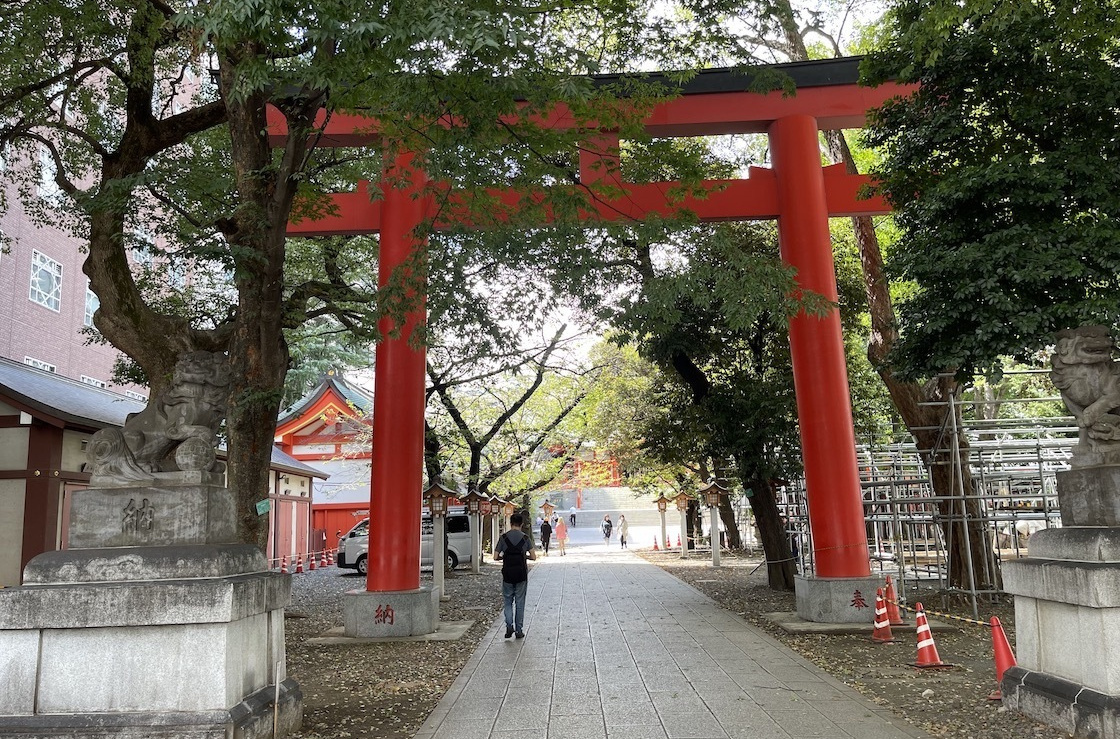 江戸時代の前から大和吉野山より勧請され、長きに渡り新宿の総鎮守として親しまれてきたという花園神社。繁華街近くにありながら、一歩境内に入ると都会の喧騒を忘れるかのような静かで落ち着いた雰囲気に包まれます。社殿は火災などにより何度か建て替えられており、現在の建物は1965(昭和40)年に再建されました。境内には芸能関係者が多く参拝に訪れる「芸能浅間神社」や縁結びのご利益で人気の「威徳稲荷神社」など見どころが多くあるので、のんびり散策してみては。また、毎年11月に開催される「酉の市」では商売繁盛を祈願する「熊手」の店がずらりと並ぶほか、靖国通り沿い参道にも屋台が出て多くの人でにぎわいます。
