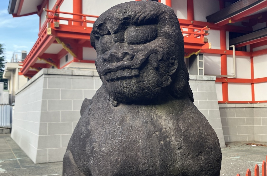 1745(延享2)年に奉納されたという狛犬は表情がユーモラス。