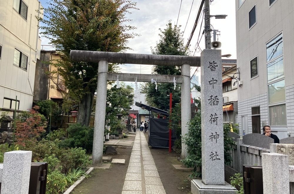 1533(天文2)年に鎮座した、大久保通り沿いにある神社。かつて江戸幕府がこの辺りに住まわせた「鉄砲組百人隊」の隊士のひとりが夢で稲荷のお告げを受け、この神社にお参りをしてから射撃をしたところ百発百中しました。そして、その話を聞いた人々が皆お参りすると、本当によく願いが叶ったために「皆中(みなあたる)稲荷神社」と呼ばれるようになったと伝えられています。今では当選や的中のご利益があるとされ、日々多くの人が参拝に訪れています。
