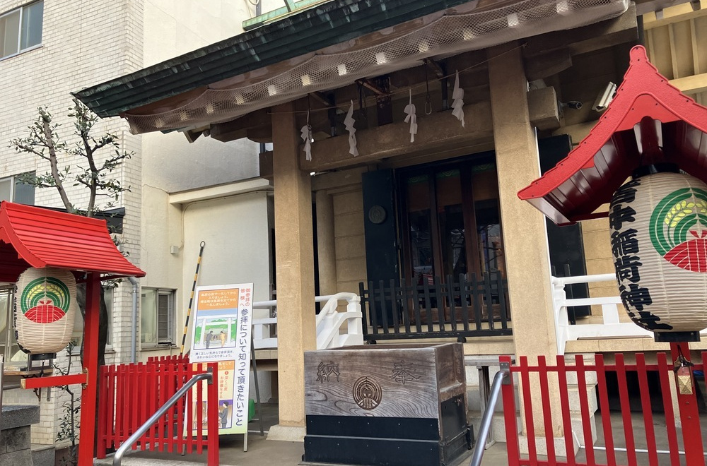 職安通り沿いに鳥居が立つ。