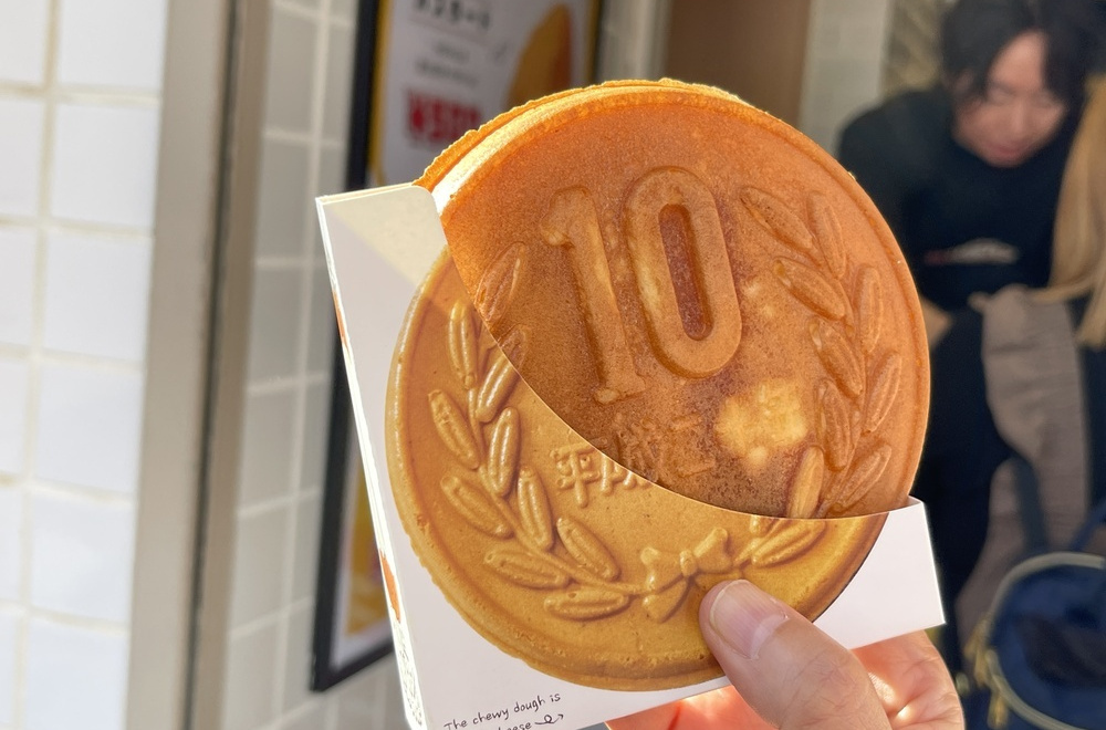 韓国でブームとなった10ウォンパンの日本版。もちもち食感の甘い生地の中に、チーズがたっぷり。他にあずきやカスタードなど全4種あり。1個500円。