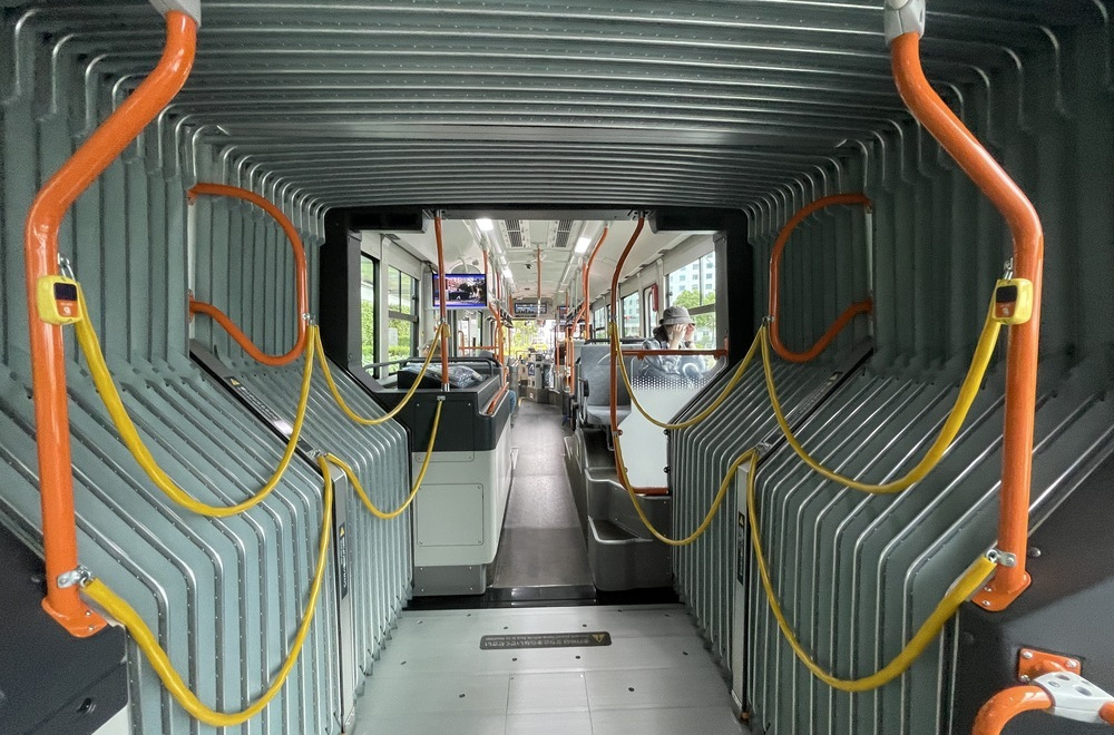バスを連節するジャバラ部分。不思議な空間に見える。