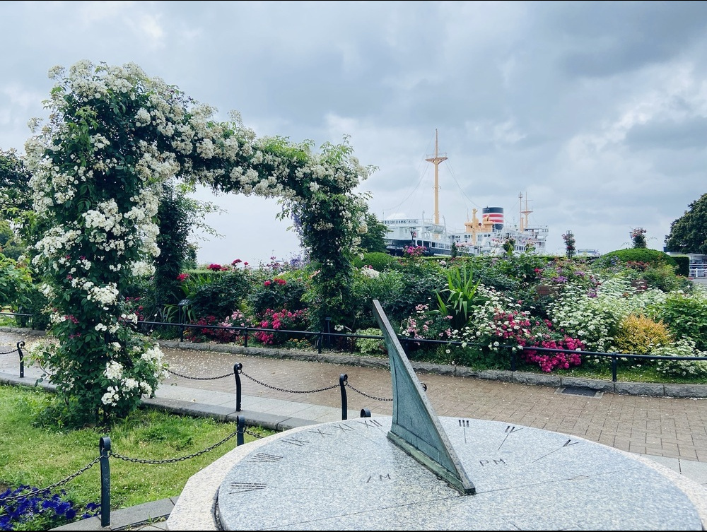 日本初の臨海公園。岸壁には日本郵船氷川丸が係留され、園内には赤い靴はいてた女の子像をはじめ、世界各国から寄贈されたオブジェや記念碑などが点在。季節ごとの花が楽しめる沈床花壇では春と秋にバラが最盛期を迎え、訪れる人を楽しませてくれます。広々とした芝生広場や、横浜港に沿って約700m続く園路にはベンチもあり、散歩やひと休みにうってつけです。