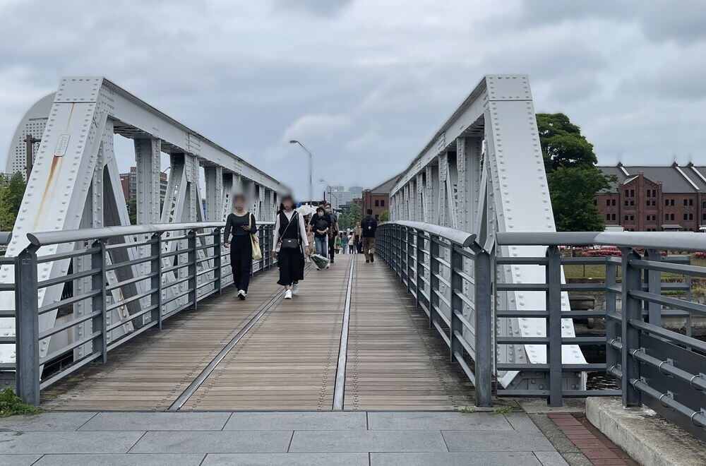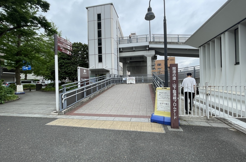 横浜ハンマーヘッドや横浜赤レンガ倉庫などがある新港地区と山下公園を結ぶ約500mの遊歩道。大さん橋側の入口から立体遊歩道へ続く坂道をのぼれば、横浜港や歴史的建造物、みなとみらいの景色が広がります。新港橋には廃線になった山下臨港線のレールがそのまま利用され、当時を偲ばせます。