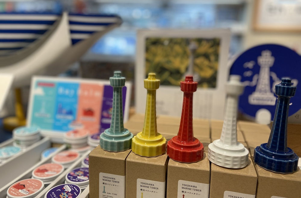 廃版となって廃棄される海図(海で使われる地図)グッズやマリンタワーオリジナルグッズ、横浜市認定のヨコハマ・グッズ「横濱001」など、横浜にまつわるフード系みやげや雑貨などが豊富に揃う。