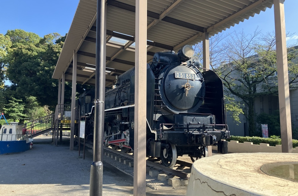 | 児童エリアに展示された蒸気機関車D51も必見 児童エリアには1943(昭和18)年に製造され、1972(昭和47)年まで走っていた蒸気機関車があり、その重厚感ある車両を間近で楽しめるだけではなく、機関室に自由に入ることができます。また、同エリアには1978(昭和53)年まで荒川線を走っていた車両もあり、こちらも車内が開放されています。レトロな二つの車両はフォトスポットとしてもおすすめです。 |