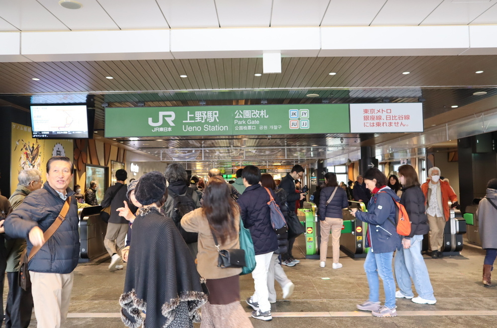 JR山手線・京浜東北線で東京駅から8分・170円、東京メトロ銀座線で銀座駅から12分・180円。上野駅構内から公園口までは長い通路があり、やや時間がかかります。常に人が多い駅でもあるので、時間に余裕を持って出かけましょう。