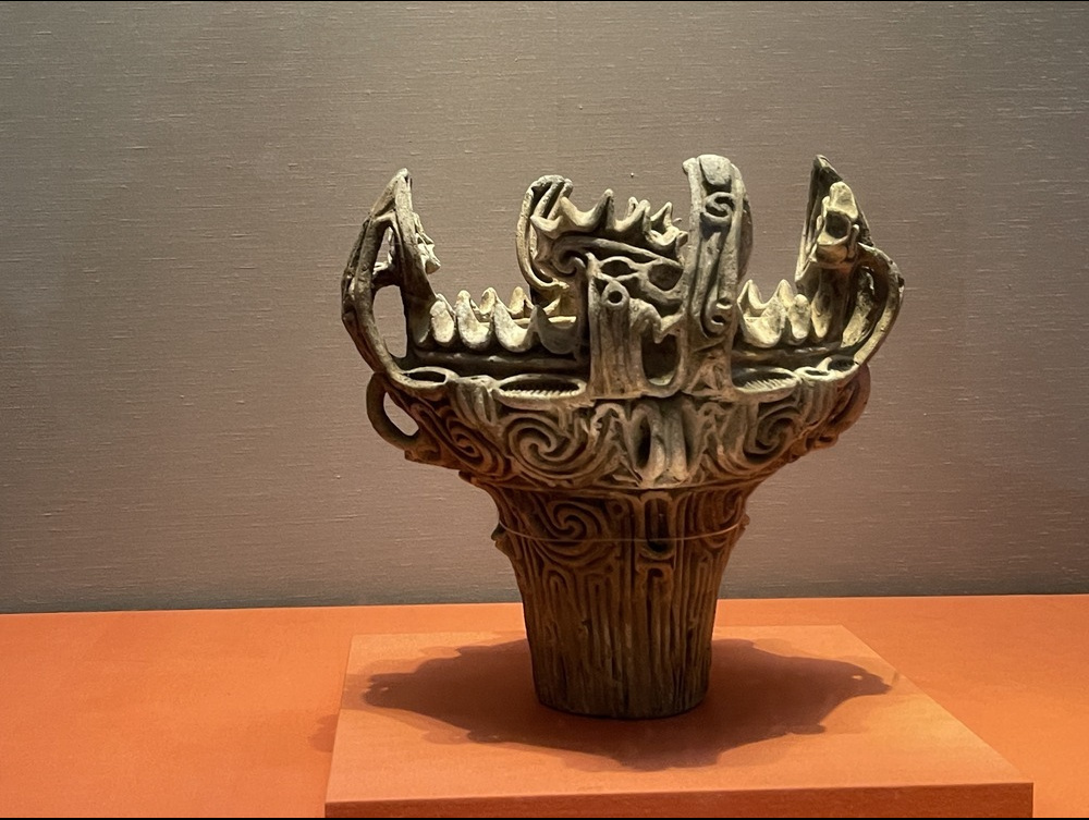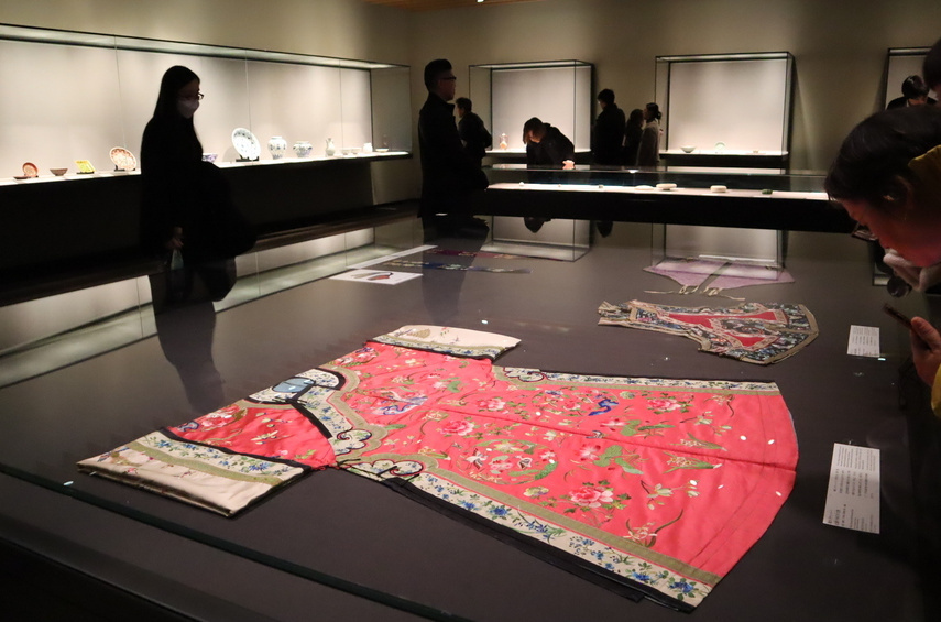 各時代で変遷するつづれ織りの技法やデザインなどを展示し、清朝時代の妃がまとった華麗な衣装に出会えることも。5室には、中国の青銅器や王侯貴族の墳墓に供えた模型や人形、陶磁も展示している。