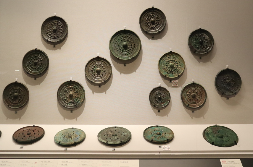 青銅製の鏡など古墳時代の政治的・祭祀的権威を表す宝器を展示。中国の世界観を反映した図などさまざまな紋様が興味深い。