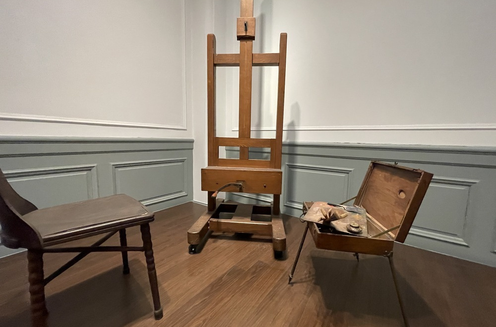 展示室の一角には黒田が使用したイーゼルや絵具箱などを展示。
