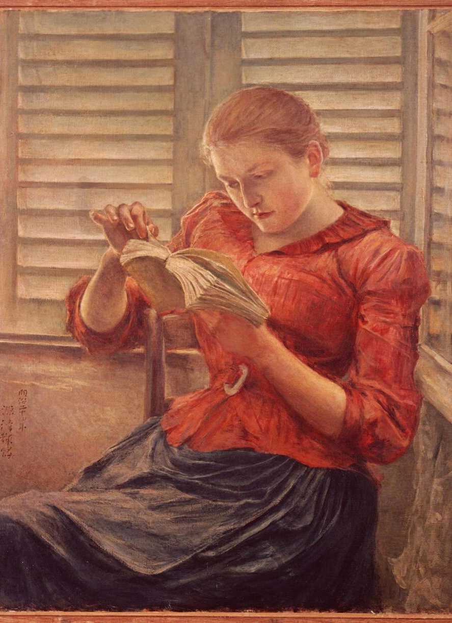 名品1⃣ フランス滞在中に手がけた初期を代表する作品。読書する女性は当時好んで描かれたモチーフ。出典:ColBase(https://colbase.nich.go.jp/)