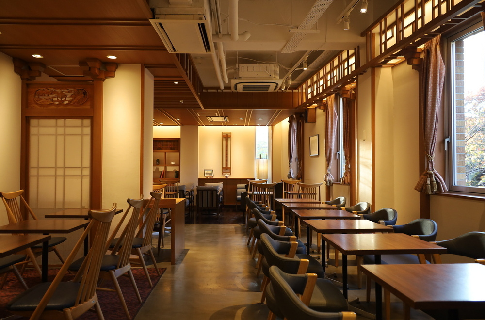 東洋館別棟1階、御前などの和食や・洋食、中華、デザートも揃うレストラン。店内はテーブル席がゆったりと配置され、庭に面した2面の窓際席からの眺めはばつぐん。天気のいい日はテラス席もおすすめです。テイクアウト専用の「カフェ ゆりの木」を併設し、ドリンクや和洋のスイーツを取り揃えます。