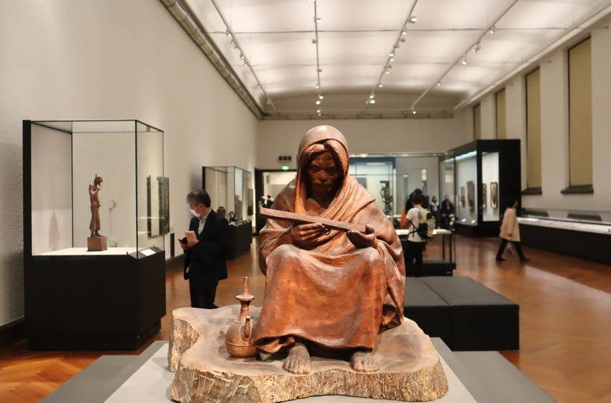 ジャンル別展示では、近代化が始まった明治・大正の絵画や彫刻、工芸も紹介。伝統的な木彫技術と西洋の彫塑を融合させた彫刻作品などが見られる。