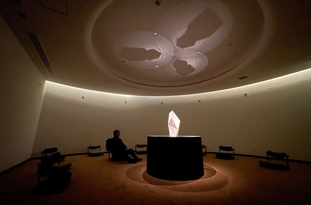 | 書店の水琴窟<CALM>でヒーリング! magmabooks3階「magmalounge」には、個室空間<FOCUS>の反対側に、<CALM>と呼ばれるリラックスするための部屋があります。ここには日本庭園の水琴窟の原理を用いた装置が中央に設置され、照明を落とした部屋全体に滴り落ちる水音が響きます。靴を脱ぎ楽な姿勢で部屋に座っていると、自然な音の響きに身体が包み込まれ、思考が解きほぐされていくようです。日本古来の音を最新テクで届ける新しいヒーリングスポット。頭が疲れている人におすすめです。 |