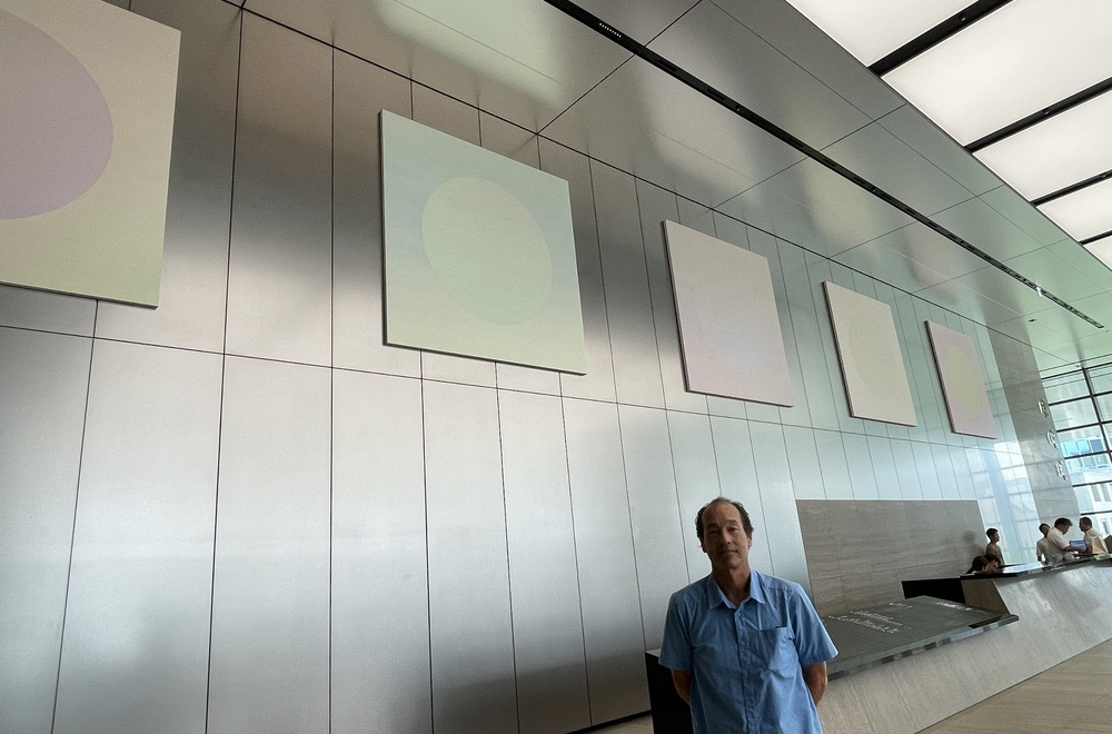 3F オフィスエントランスにある「Ring of Liight」と作者のフランシス真悟氏。