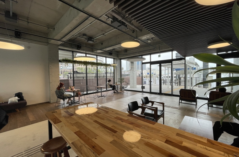 日の出ふ頭にあるHi-NODEは、2019年にオープンした船客待合所とレストラン・カフェ、芝生広場を併設した複合施設です。単なる港湾施設ではなく、憩いの場として親しまれています。都心にありながら海を臨む開放的な空間が特徴で乗船客でなくても、レストランでの食事や、芝生広場、ウッドデッキで潮風を感じながら過ごすことができます。