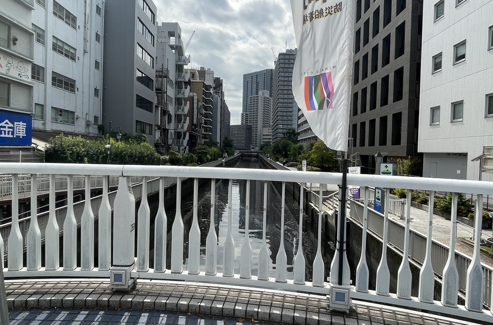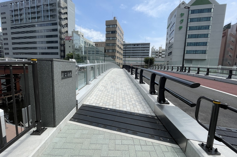 「BLUE FRONT SHIBAURA TOWER S」前にある、新しく設置された「新芝浦橋」を渡る。