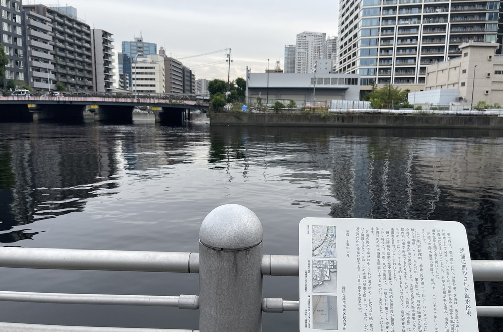 芝浦運河沿いに整備された緑の空間で、オフィスビルに囲まれた都心のオアシスのような雰囲気があります。水辺まで降りられる親水空間や遊歩道が整備され、散歩やジョギング、休憩に利用されています。四季折々の景色が楽しめ、夜にはガス燈も点灯。また、この界隈は江戸時代には月見や海水浴の名所として賑わったエリアでもあり、明治時代に都内で初めての海水浴場が開設された場所としても知られています。