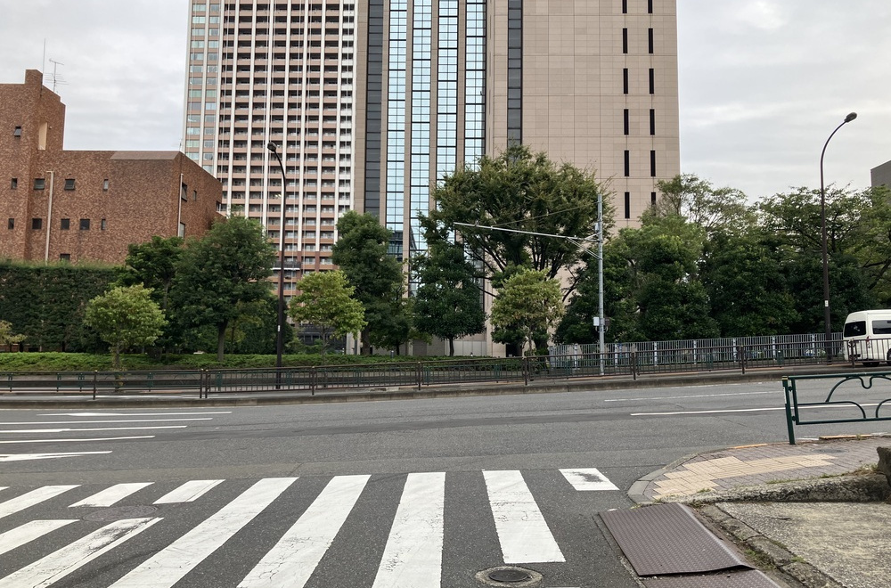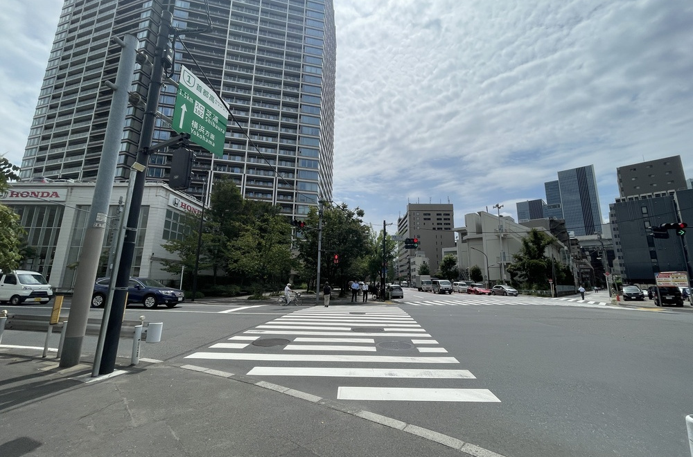 浜松町南口改札を出たら、そのまま道なりに進み外へ。新しく整備された歩道を直進すると「BLUE FRONT SHIBAURA TOWER S」に到着します。