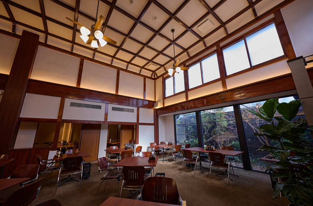 元は銭湯だった建物を改修したダイニング「西洋館」。日本の伝統的な木組みの技による「格天井(ごうてんじょう)」は建築雑誌に取り上げられたことも。