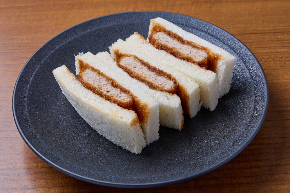 「ヒレかつサンド(3切れ)」560円。やわらかいヒレかつと、肉の歯ごたえと調和するパン、甘めのソースとが成しえる自慢の味。レストランで作りたてをいただくのは格別。