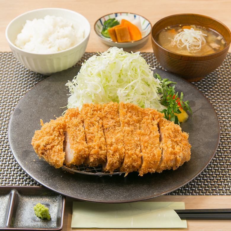 「特上厚切りロースかつ定食」2380円。とんかつ専門店の醍醐味を堪能するならこちら。群馬県産麦豚の、きめ細かく、なめらかな赤身と甘みのある脂身を、たっぷりの180gで楽しめる。