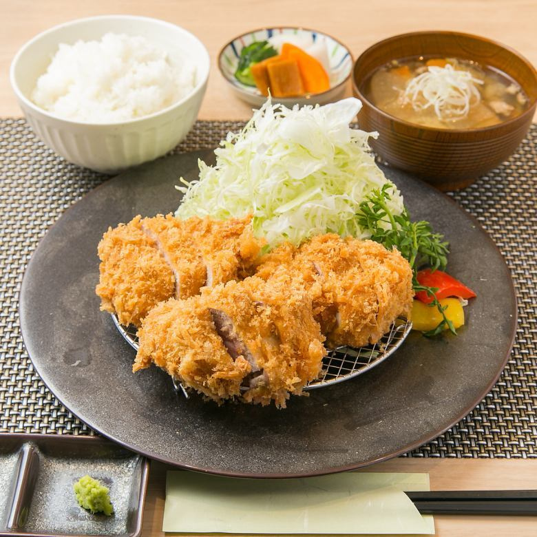 「特上ヒレ定食」2600円。ヒレの中でも繊維質が少なく、肉質やわらか。「豚のシャトーブリアン」とも言われる部位を贅沢に200g。外国人旅行者にも人気の高い逸品はぜひ塩とワサビで味わいたい。