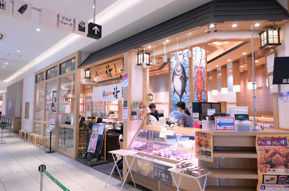 JRおよび東急の両方の武蔵小杉駅からほど近いショッピングモール「グランツリー武蔵小杉」の中にある回転寿司店。時間帯によっては並ぶことも。