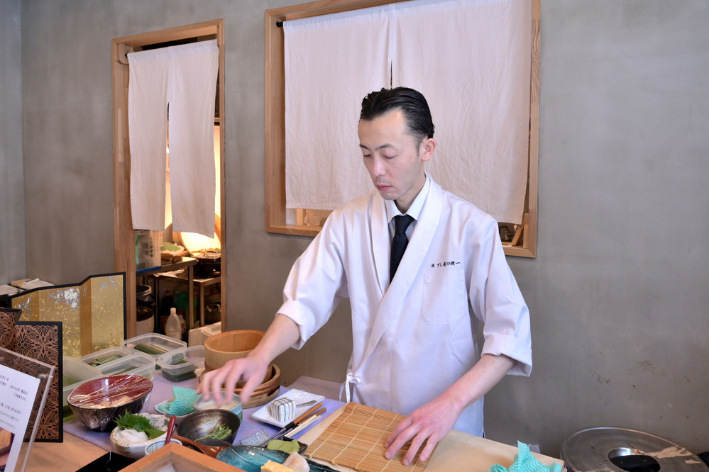店主の工藤健一さん。有名ホテルの寿司店で寿司シェフのキャリアを持つ。高級店であれば数万円におよぶ寿司をテイクアウト形式にすることによって、より多くの人々に上質な寿司を届ける。