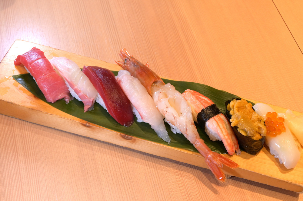 ターミナル駅内の寿司屋。魚屋直営ならではの上質なネタを、少しの空き時間に楽しめる