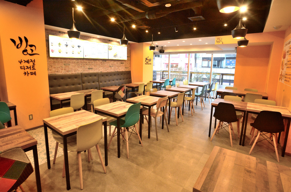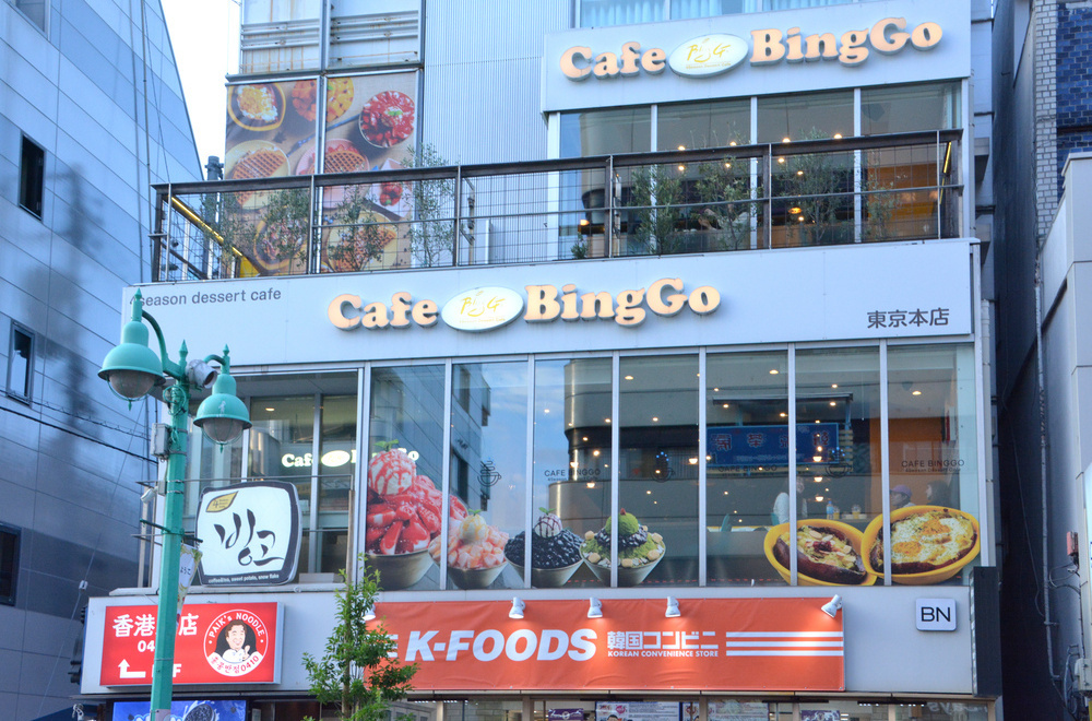 多国籍タウン・新大久保のメインストリートに面するビルの2・3階。Cafe BingGoは韓国ソウルが発祥で、大阪にも2店舗がある。