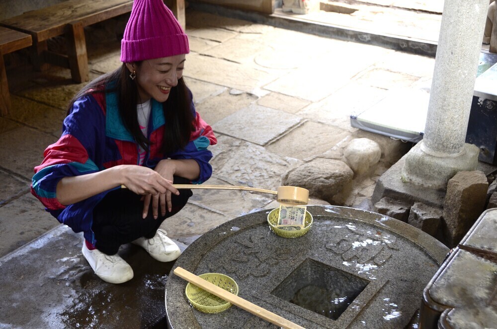 TOKYO WALKINGのお散歩ナビゲーターを務めるTomokoさん(東京ベイシックコースVol.17 品川神社にて)